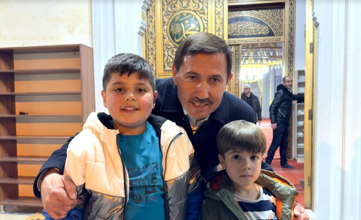 Camii’nde, teravih namazı sonrasında Karataylılarla hasbihâl etti.