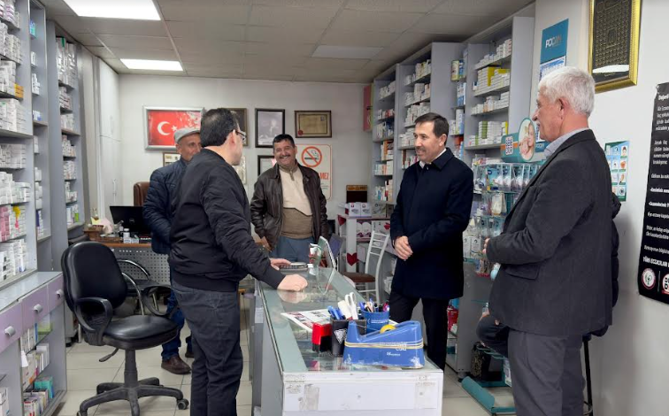 mensuplarıyla birlikte Buğday Pazarı’nda faaliyet yürüten esnafları ziyaret etti.