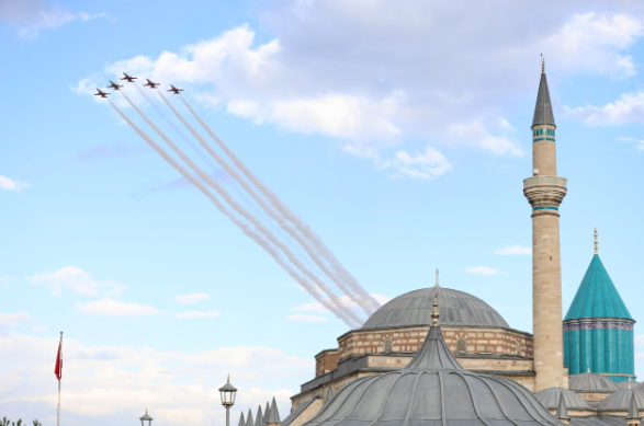 Programın sonunda ise Türk Hava Kuvvetleri’ne bağlı akrobasi timleri Türk Yıldızları ve Solo Türk tarafından gösteri uçuşu gerçekleştirildi. Meydanda toplanan vatandaşlara unutamayacakları bir gösteri sunan Türk Yıldızları ve Solo Türk, solo ve takım olarak sergiledikleri cesur manevralarıyla büyük alkış aldı.