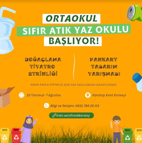 Karatay Kent Konseyi’nde gerçekleştirilecek. Yaz Okulu zengin içeriği ile katılımcıların sıfır atık