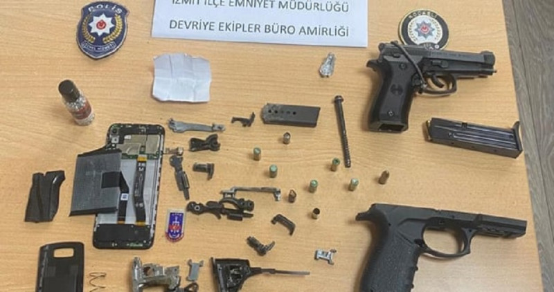 Ekipler yaptığı çalışmayla çuvallara ulaştı. Yapılan kontrollerde çuvalların içerisinde; 417 adet tabanca namlu bloğu, bin 726 adet kancalı demir parçası, 696 adet tabanca icra mili, 633 adet 4 cm'lik yay, 723 adet 3 çentikli demir parçası, 82 adet 7 cm'lik yay, 637 adet 3 cm'lik pim, 190 adet yuvarlak delikli pim, 825 adet 1.5 cm'lik yay, bin 994 adet tabanca şarjörü, 1,5 cm uzunluğunda ince kenarlı muhtelif miktarda yay olduğu tespit edildi. Olay ile ilgili Cumhuriyet Savcısına bilgi verilerek adli tahkikata başlandı.