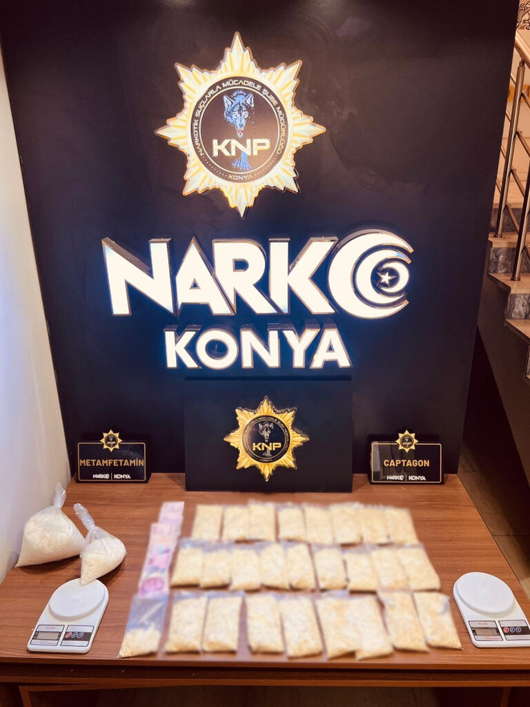 Narkotik ekiplerinin Meram ilçesi Pirebi Mahallesi’nde belirlenen adrese yaptığı operasyonda 1 kilo 460 gram metamfetamin, 26 bin 800 adet uyuşturucu hap ve 2 adet hassas terazi ele geçirildi. Yabancı uyruklu olduğu belirlenen 2 şüpheli gözaltına alındı.