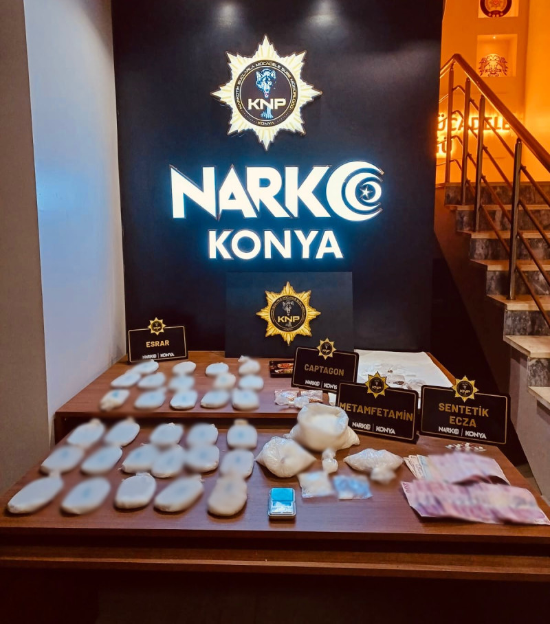 Olayla ilgili araştırma yapan ekipler şahsın Meram İlçesi Uzunharmanlar Mahallesinde kaldığı adresi tespit ederek baskın yaptı. Adreste yapılan aramada 1.158 gram metamfetamin maddesi, 5.875 gram plaka esrar maddesi, 737 adet uyuşturucu hap maddesi ve uyuşturucu ticaretinde kullanılan 2 adet hassas terazi ele geçirildi. İkamette bulunan 1 kişi gözaltına alındı.