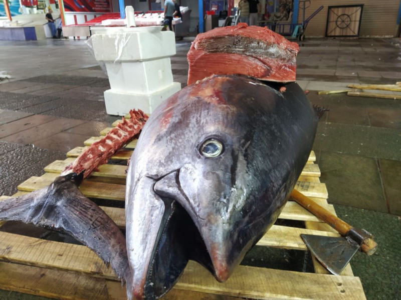 Denizlerde av yasağının kalkmasının ardından balık sezonu başlarken Konya’da da sezonun ilk balıkları balık pazarındaki tezgahlara sıralandı. 205 kiloluk dev orkinos ise haftanın en dikkat çeken balığı oldu