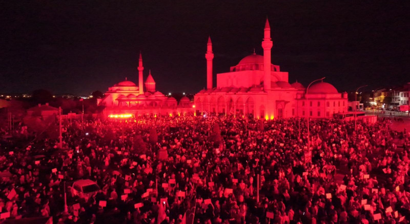 Kılıçarslan meydanı’ndan mevlana meydanı’na kadar devam eden yürüyüşte katılımcılar, gazze’deki katliamlarda hayatını kaybeden bebeklerin ve çocukların isimlerinin yazılı olduğu dövizler ile filistin’e destek pankartları taşıdı. yürüyüş boyunca savaş sesleri simüle edilerek katılımcılar gazze halkının yaşadığı korku ve çaresizliği hissetti. güzergâhtaki aydınlatmalar kapatılırken taş bina, alâeddin camii, darülmülk müzesi ve mevlana türbesi kırmızı ışıklarla aydınlatıldı.