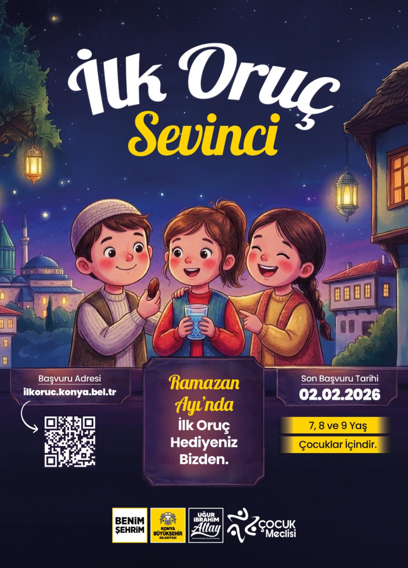 Konya Büyükşehir Belediyesi tarafından 7, 8 ve 9 yaş grubundaki çocuklar için hazırlanan İlk Oruç Hediyesi programına başvurular, “ilkoruc.konya.bel.tr” adresi üzerinden 2 Şubat 2026 tarihine kadar yapılabilecek.