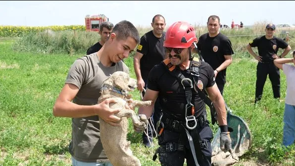 Ekipler, köpeği kurtarabilmek için hummalı bir çalışma gerçekleştirildi. Bir itfaiye eri halata bağlanarak obruğa indirildi. Köpek saatler süren operasyonla düştüğü obruktan kurtarıldı.