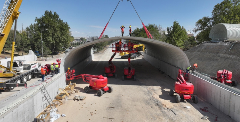 Başkan Altay, kavşakta yaşanan yoğunluğu gidermek için Türkiye’de ilk kez bu açıklıkta ve büyüklükte uygulanan bir yöntem kullandıklarını vurguladı. Altay, “Çelik parçalar fabrikada bükülmüş olarak geliyor, burada birleştiriyoruz ve basınç kuvvetiyle çalışan bir sistem oluşturuyoruz. Araçlar için çift yönlü tünel, bisiklet ve yayalar için de ayrı tüneller yapıyoruz. Böylece hem hızlı hem güvenli hem de konforlu bir ulaşım sağlamayı hedefliyoruz” dedi.