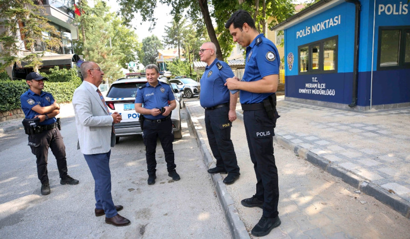 Meram Belediye Başkanı Mustafa Kavuş ve Meram İlçe Emniyet Müdürü Mustafa Eski, vatandaşların talepleri doğrultusunda kurulan polis noktasında incelemelerde bulundu.