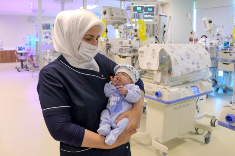 Örs, Savaş bebeği aralıklarla verilen bir miktar oksijen desteğiyle sağlıklı şekilde taburcu ettiklerini belirterek, "Gelişimi gayet iyi. Bebeğimizi 2 kilo 300 gram civarında bir ağırlıkla gönderdik. Anne sütüyle beslenip kilo alıyor." dedi.