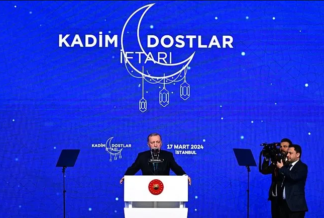İstanbul'da düzenlenen "Kadim Dostlar İftarı"nda konuşan Erdoğan, muhabbet sofrası olan iftar sofrasının zenginliğinin apayrı olduğunu belirterek, bu sofrada bulunmaktan büyük memnuniyet duyduğunu dile getirdi. Başkan Erdoğan, Ramazan-ı Şerif'in bugün 7'nci orucunu tuttuklarını anımsatarak, "Rabb'im tuttuğumuz oruçları, eda ettiğimiz ibadetleri, yaptığımız hayır hasenatı katında kabul eylesin diyorum. Sizlerin şahsında buradaki gönüllü teşekküllerimizin tüm mensuplarının Ramazan-ı Şerif'ini tebrik ediyorum." diye konuştu.