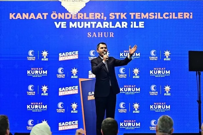 Eleştirilerine, "Sen, İstanbul'u kara kışa teslim edip, büyükelçilerle yemek yerken; biz İstanbul'un 39 ilçesinde 80 bin yuvayı vatandaşlarımıza teslim ediyorduk. Sen, kendi genel başkanını devirmek için Zoom üzerinden gizli gizli toplantılar yaparken; biz İstanbul'da 365 milyar liralık yatırım yapıyorduk. Sen, Cumhurbaşkanı ardımcısı adayı olup 80 ilde mitingler düzenlerken, İstanbul'u kaderine terk ederken; biz deprem bölgesinde 11 ilde 3 ayda 180 bin konutumuzun temellerini atıyorduk." diye devam eden Kurum, İstanbullu seçmene de çağrı yaptı ve sözlerini, "Buradan İstanbul'umuzun güzel insanlarına sesleniyorum. 31 Mart'ta gelin, 'Gerçek Belediyecilik'ten yana olun. 31 Mart'ta gelin, İstanbul'un geleceğinden yana olun. 31 Mart'ta gelin, sağlam İstanbul'dan yana olun. Her oy bir tohumdur. Hizmet görürse yeşerir, emek verilirse fidan olur, karşılık bulursa orman olur. Haydi İstanbul şehrine oy ver. Şehrine oy ver ki, İstanbul; hizmet bulsun. Huzur bulsun. Mutluluk bulsun." diyerek noktaladı.