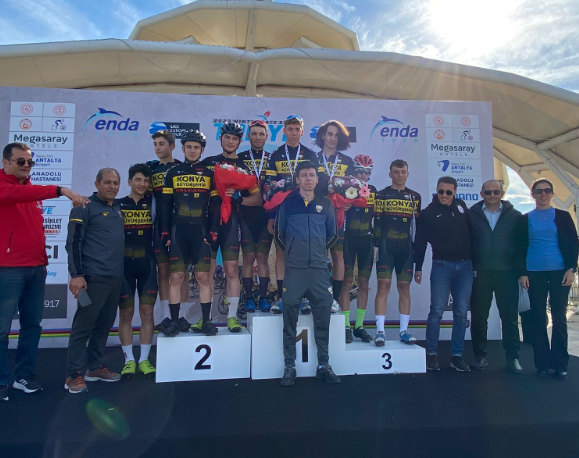Uluslararası Bisiklet Federasyonu ve Türkiye Bisiklet Turizmi Derneği tarafından Antalya’da düzenlenen Türkiye Kış Bisiklet Yarışları Serisi’nin Uluslararası Expo Kriteryum yarışında Konya Büyükşehir Belediyespor Bisiklet Takımı kürsü kapattı. Genç Erkekler kategorisinde boy gösteren Büyükşehirli bisikletçiler, yarışın başından bitişine kadar üstün bir performans ortaya koydu. Aynı kategoride yarışan Mustafa Tarakçı birinci, Ramazan Yılmaz ikinci ve Ali Yılmaz üçüncülük kürsüsünde yer alarak Konya’nın gururu oldu.