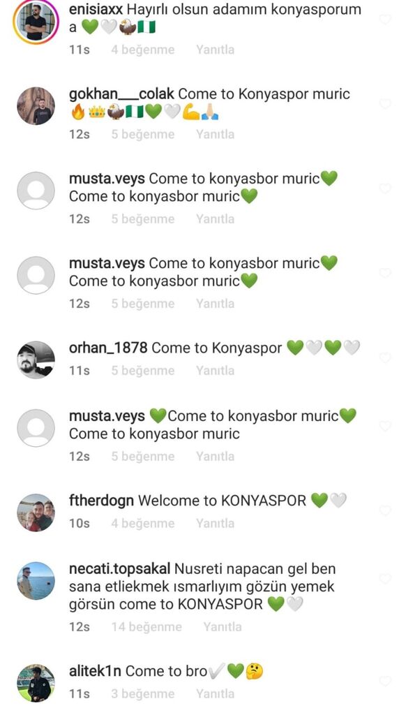 Muric, transferinde sosyal medyada büyük bir atak yapan ve Hırvat futbolcuyu ikna etmeye çalışan yeşil-beyazlı taraftarlar, Robert Muric’e büyük baskı yapıyor. Muric’in sosyal medya hesabına binlerce yorum bırakan Konyaspor taraftarları, yıldız futbolcunun fotoğraflarına "Come to Konyaspor" (Konyaspor’a gel) mesajı yazdı. Deneyimli futbolcu Muric’in ise, yapılan bazı yorumları beğendiği görüldü.