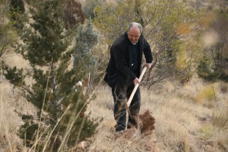 Aksaray'ımızın tekrar 'Yeşil Aksaray' olarak anılması için daha önce elime geçen her fidanı dikiyordum ancak toprağa ve iklime uygun olarak badem fidanı olduğunu gördüm. Şimdi bu tepelere her yıl binlerce badem fidanı dikiyorum. Diktiğim fidanlar ağaç oldu ve büyük bir ormana dönüştü. Ayrıca bu bölgenin dışında şehrimizin ağaçlandırma alanlarına her yıl 15 binin üzerinde peşe palamudu dikiyorum" dedi.