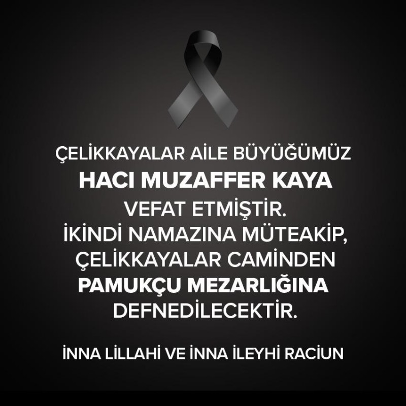 Konya’nın tanınmış iş adamlarından Çelikkayalar AVM kurucu ve sahipleri Mesut ve Ali Kaya kardeşlerin babaları, genç iş insanları Muzaffer ve Muzaffer Kaya’nın dedeleri Hacı Muzaffer Kaya, 74 yaşında vefat etti.