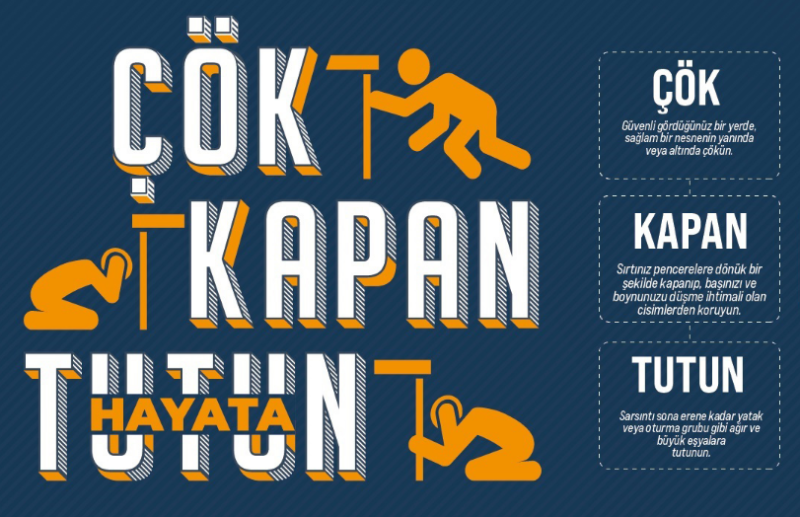 Çökeceğiz çünkü boyutumuzu küçültmeliyiz,kapanacağız çünkü başımızı ve boynumuzu korumalıyız,tutunacağız çünkü depremin sarsıntısı ile savrulmamalıyız.
