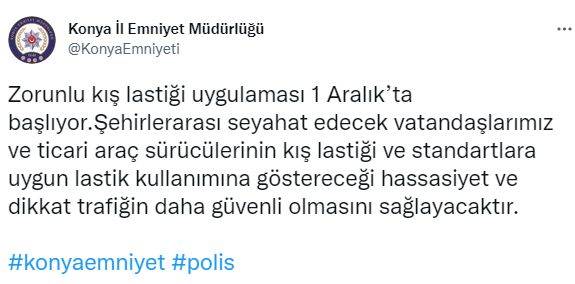 Konya Emniyet Müdürlüğü’nden kış lastiği ile açıklama geldi