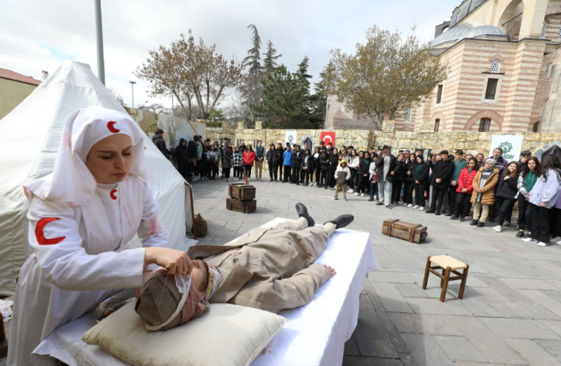 Hükümet Meydanı’nda, bin 100 metrekarelik alana içerisi panoramik olarak tasarlanan tarihi kalede gerçekleştirilen programa Konyalılar büyük ilgi gösterdi. 13 kişilik profesyonel tiyatro oyuncularının sahne aldığı proje vatandaşlardan tam not alırken; Çanakkale şehitlerinin anıldığı tiyatro gösterilerinde duygu dolu anlar yaşandı.