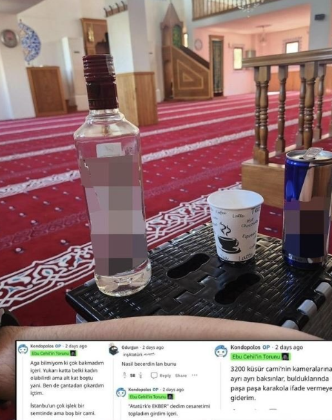 Türkiye'yi şoke eden olay, geçtiğimiz günlerde yaşandı. S.Y.Ö. isimli şüpheli, bir camide alkol kullandığını gösteren fotoğraf paylaştı altına da "3 bin 200 cami içinde hangi cami olduğunu bulabilirlerse…" notunu yazdı. Camide yapılan skandal paylaşıma tepki yağdı.