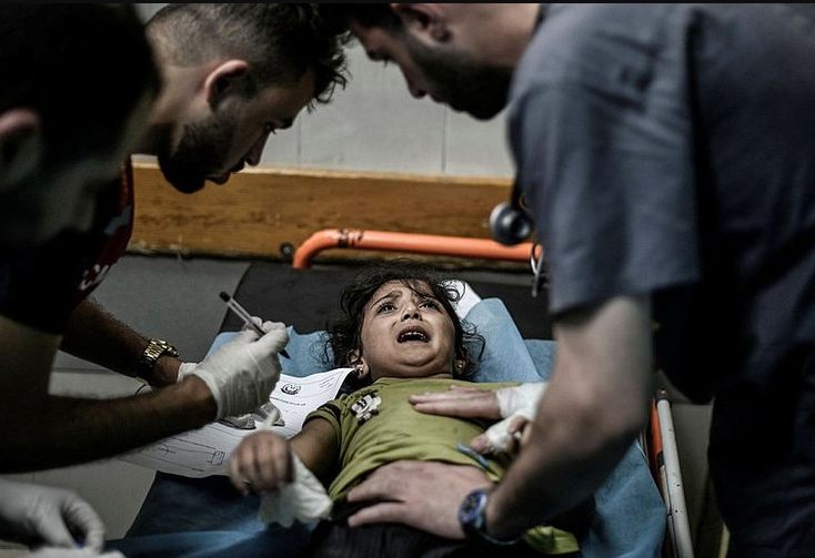"İsrail ağır yaralı bebeklerin görüntülerini paylaştı" başlığını kullanan The Times, bu başlığın altında Gazze'de İsrail bombaları tarafından yaralanmış Filistinli çocukların fotoğrafını kullandı.