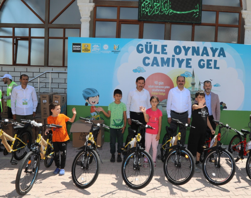 Konya Büyükşehir Belediyesi tarafından düzenlenen “Güle Oynaya Camiye Gel Projesi”nde 31 ilçede bisiklet almaya hak eden çocuklara bisikletleri dağıtıldı.