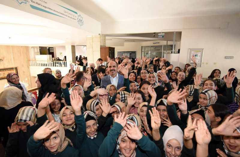 Okul ziyaretlerini sürdüren Konya Büyükşehir Belediye Başkanı Uğur İbrahim Altay, Mahmut Sami Ramazanoğlu Anadolu İmam Hatip Lisesi Fen ve Sosyal Bilimler Proje Okulu ile Kız Anadolu İmam Hatip Lisesi’ni ziyaret etti. Tek tek sınıflara giderek öğretmenlerle ve öğrencilerle sohbet eden Başkan Altay, “Eğitime ve öğrencilerimize destek olmayı Konya Modeli Belediyecilik anlayışımızın en önemli önceliklerinden biri olarak görüyoruz. Fırsat buldukça okulları ziyaret ediyor ve yarınlarımızın teminatı olan gençlerimizle bir araya geliyoruz. Onların gözlerindeki parıltıyı görmek, coşkularına ortak olmak bizleri de mutlu ediyor. Okuyan, araştıran, çağın gereklerine göre donanım kazanan gençlerimiz yarınlar için en büyük ümidimizdir. Okul yönetimine, öğretmenlerimize ve öğrencilerimize gösterdikleri yakın ilgiden dolayı teşekkür ediyorum.” diye konuştu.