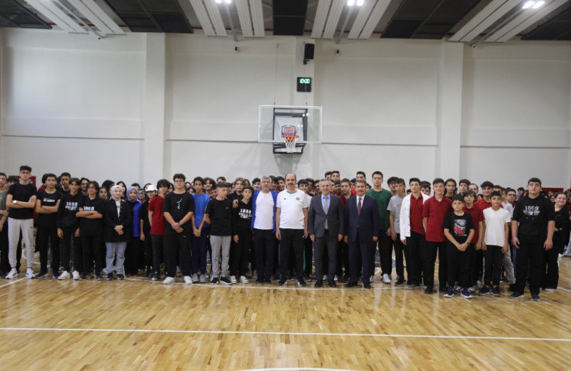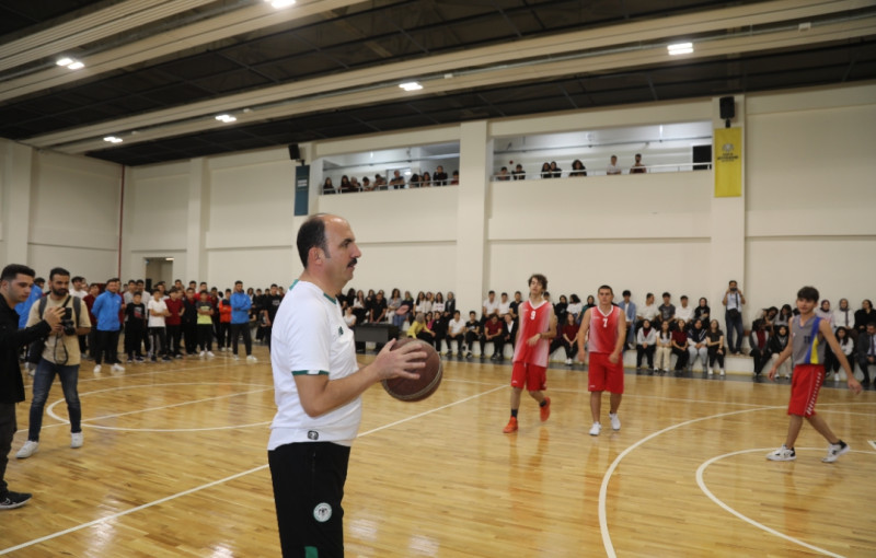 Konuşmaların ardından Başkan Altay, okula kazandırılan yeni salonda Konya Lisesi Basketbol Takımı ile basketbol oynad