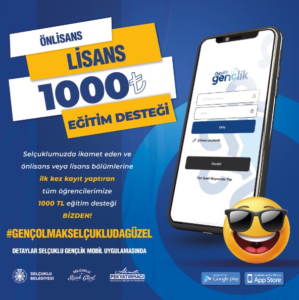 Selçuklu Belediyesi, Selçuklu’da bu yıl ilk defa lisans veya ön lisans bölümlerine kayıt olan tüm gençlere 1000 TL, ayrıca şartları sağlayan ve Selçuklu’da ikamet eden S.Ü ve KTÜN öğrencilerine de 1.500 TL eğitim desteği veriyor.
