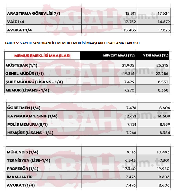 İşte milyonlarca vatandaşın merak ettiği emekli ve memur Ocak zammı ve enflasyon farkı ile beraber yeni emekli-memur maaşları hesaplama tabloları...