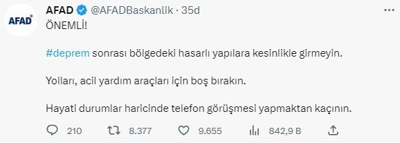 #deprem sonrası bölgedeki hasarlı yapılara kesinlikle girmeyin.