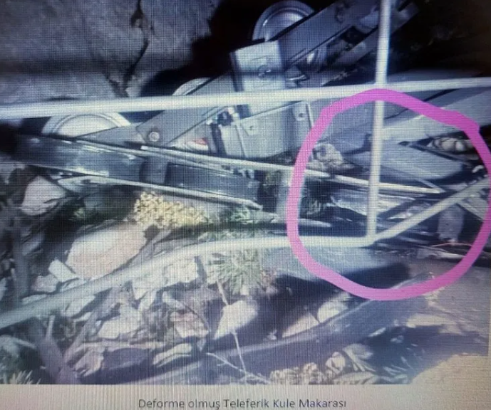 Ayrıca devrilmiş olan direk yanına gidildiğinde taşıyıcı-çekici halatları tutan makaralardan birisinin halatın etkisiyle deforme olduğu, halatın makaranın içerisine girdiği tespit edildi. Bilirkişinin 9 sayfalık raporunda devrilmiş olan direğin çekici ya da taşıyıcı halatların makara içerisine sıkışması ile kesici anahtarın görevini yapamaması sonucu halatın çekmeye bağlı olarak direğe moment uyguladığı ve direğin alttan ikinci katındaki flanşların cıvatalarının kopması ile birlikte direğin devrildiği tespitine yer verildi.