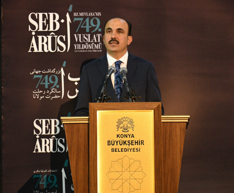 “ONUN İRFAN YOLU YOLDA KALMIŞLARA HER ASIRDA REHBERLİK ETMİŞTİR” Konya Valisi Vahdettin Özkan ise, Hz. Mevlânâ’nın bütün zamanları ve insanları kapsayan evrensel bir miras bıraktığını belirterek, “O, bütün insanlığı kucaklamış ve tüm insanlık tarafından kucaklanmıştır. Hiç kuşkusuz bugünün dijital çağ insanına da Hazreti Pir’in söyleyecekleri vardır. Onun yüzyıllar öncesinden gelen sesine kulak vermek, bir bilgelik ideali ve estetiğiyle dile getirdiği düşüncelerini anlayıp çözümlemek, irfanla dünyayı daha yaşanılabilir kılmak ve bunları yeni nesillere aktarmak için bizlere önemli görevler düşmektedir. Tarihimizin en önemli irfan kaynaklarından biri olan Hz. Mevlâna’nın günümüze ve geleceğe ışık tutan düşünceleri, insana ve yaşama ilişkin derinlikli söylemleri herkes için ufuk açıcıdır. Hz. Mevlânâ’nın asırlar önce tüm insanlık için çizdiği istikamet, modern toplumların bireye kazandırmayı hedeflediği değerleri de içermektedir. İnsanlık mirası olan bu hakikatler dün olduğu gibi, bugünkü insanın mayasında var olmaya devam etmektedir. Onun irfan yolu, yolda kalmışlara ve yol arayanlara her asırda rehberlik etmiştir. İnsanlara dostluk, sabır ve tahammül aşılamıştır. 749. Vuslat Yıldönümünde Hz. Mevlâna’yı rahmetle anıyorum. Anma Törenlerini teşrif eden siz değerli konuklarımızı muhabbetle selamlıyorum.” diye konuştu. Konuşmaların ardından Kültür ve Turizm Bakanlığı İstanbul Tarihi Türk Müziği Topluluğu Genel Sanat Yönetmeni Mehmet İhsan Özer, topluluk üyeleriyle Türk Tasavvuf Müziği konseri gerçekleştirirken, topluluğa sesiyle Devlet Sanatçısı Ahmet Özhan eşlik etti. Kültür ve Turizm Bakanlığı Konya Türk Tasavvuf Müziği Topluluğu tarafından ise “Mevlevi Ayini Şerifi” icra edildi.
