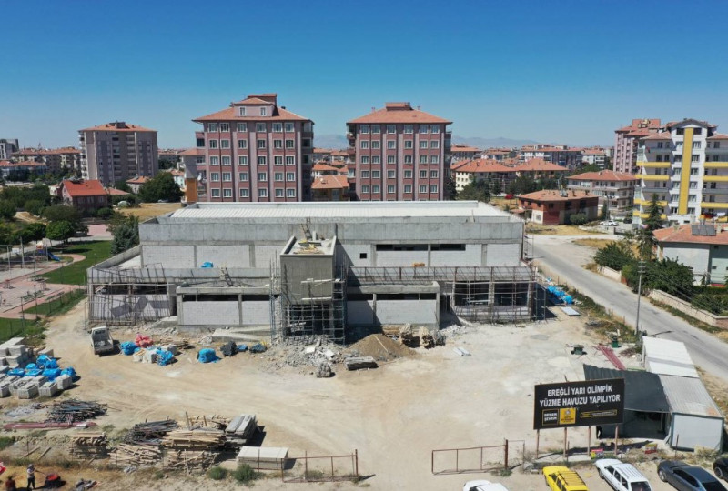 Konya Büyükşehir Belediye Başkanı Uğur İbrahim Altay, Büyükşehir Belediyesi tarafından yapımı sürdürülen Ereğli Yarı Olimpik Yüzme Havuzunu inceledi. Ereğli’nin sosyal hayatına yeni bir ufuk açacak projenin devam ettiğini kaydeden Başkan Altay, “Böylece Ereğli’miz bir yarı olimpik yüzme havuzuna kavuşmuş olacak. 12 buçuğa 25 metre ebatında, 2,20 derinliğinde bir ana havuzumuz, yan tarafında bir buçuk metre derinliğinde antrenman havuzumuz, buhar odası, saunası, fitnes salonuyla birlikte yeni bir kompleksi Ereğli’mize kazandırıyoruz. İnşallah 2023 yılının ilk aylarında Ereğli’de hem gençlerimize, hem de çocuklarımıza hizmet vermeyi arzu ediyoruz. Emeği geçenlere teşekkür ediyorum. Ereğli’mize hayırlı olsun.” dedi. Toplam 3 bin metre kapalı alanda hayata geçirilecek Ereğli Yarı Olimpik Yüzme Havuzu, yaklaşık 15 milyon liraya mal olacak.