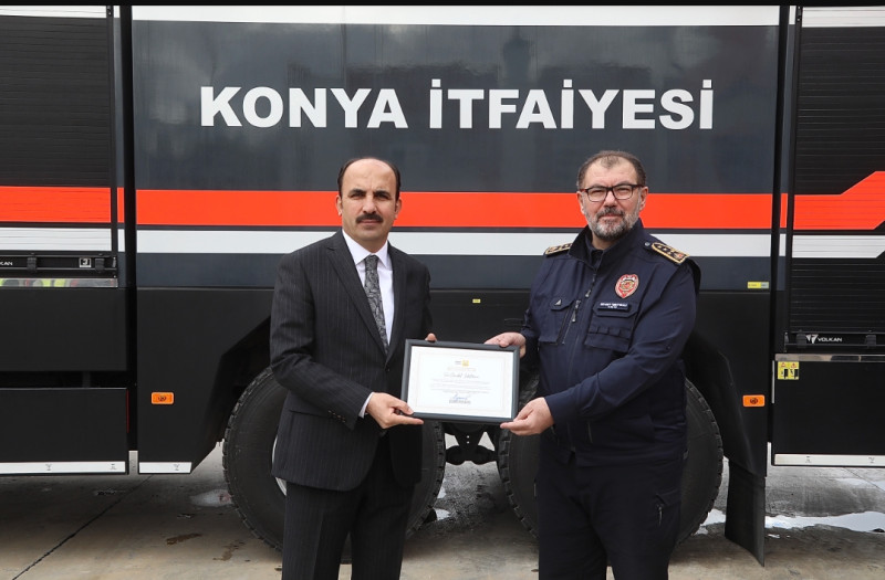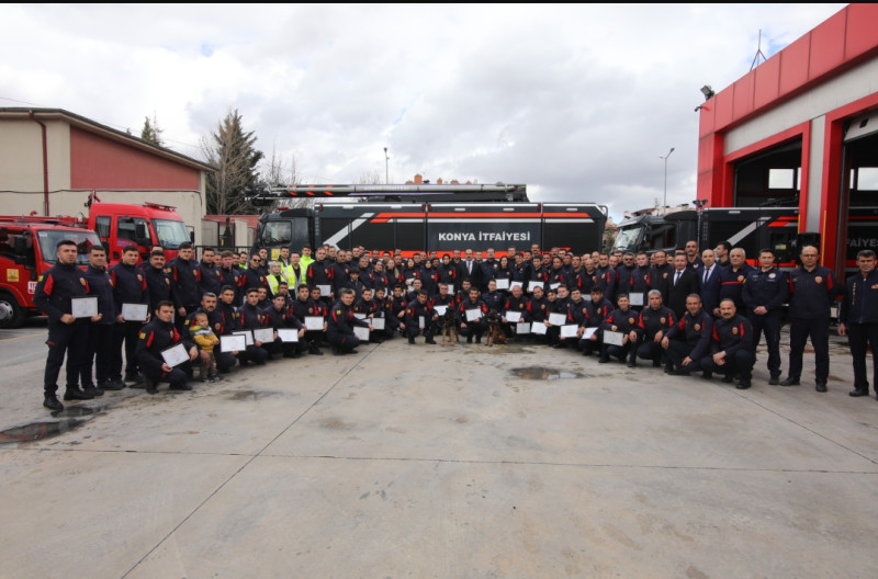 Konya Büyükşehir Belediye Başkanı Uğur İbrahim Altay, deprem sonrası Hatay’da görev yapan ve enkazdan 168 vatandaşın kurtulmasına vesile olan Konya İtfaiyesi personeline teşekkür belgelerini takdim etti. Başkan Altay, “Konya Büyükşehir Belediyesi İtfaiyesi Türkiye’nin en gözde itfaiyelerinden birisidir. Bunu biz zaten biliyorduk. Çünkü uluslararası alanda yapmış olduğumuz çalışmalar, bizim burada gözlemlerimiz buydu ama artık tüm Türkiye de görmüş oldu” dedi. Ortaya çıkan başarının kurumsal bir başarı olduğunu kaydeden Başkan Altay, “Bu bir Konya başarısıdır. Birlik ve beraberliğimizin daim olmasını diliyorum. Bugün size sunacağımız teşekkür belgeleri ömrünüz boyunca ailenizin iftihar edeceği bir belgedir. Hepinizin kahramanlığının bir göstergesidir” açıklamasını yaptı.