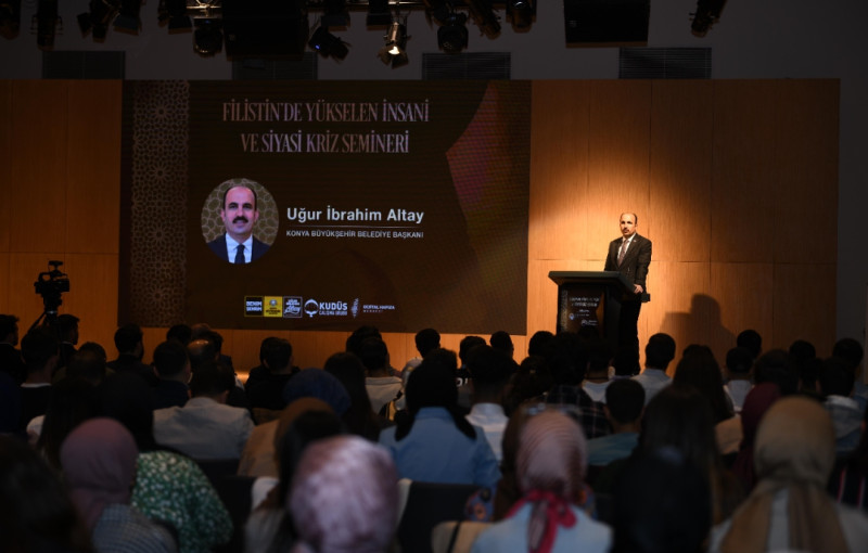 Büyükşehir Belediyesi Taş Bina Kültür ve Sanat’ta düzenlenen seminerde konuşan Konya Büyükşehir Belediye Başkanı Uğur İbrahim Altay, dünya genelinde yaşanan acıların ve Filistin, Suriye, Yemen, Somali, Ukrayna gibi coğrafyalardaki insanlık dramının artarak devam ettiğini anımsatarak, çatışma ve trajedilerin sürdüğü bir dönemde, insanlığın bu zorlu sınavda başarılı olmadığını vurguladı