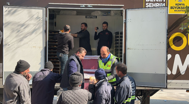 Konya Büyükşehir Belediyesi, Hatay’ı vuran yıkıcı depremlerin ardından yaraları sarmak için bölgede yoğun şekilde çalışıyor. Konya Büyükşehir Belediye Başkanı Uğur İbrahim Altay, merkez üssü Kahramanmaraş olan ve 10 ilde büyük yıkıma neden olan 7,7 ve 7,6 şiddetindeki depremlerin hemen ardından Hatay’a giderek ilk andan itibaren bölgede arama kurtarma ve koordinasyon çalışmalarına katılıyor. Afet ve acil durumlar için hizmete alınan Büyükşehir Belediyesi’ne ait Mobil Mutfak TIR’ı da günlerdir depremzedeler başta olmak üzere bölgede görev yapan tüm ekipler için faaliyet yürütürken Başkan Altay, Konya Büyükşehir Belediyesi’nin Mobil Mutfak TIR’ında ve ekmek fırınında vatandaşlara sıcak yemek ve ekmek dağıttı.