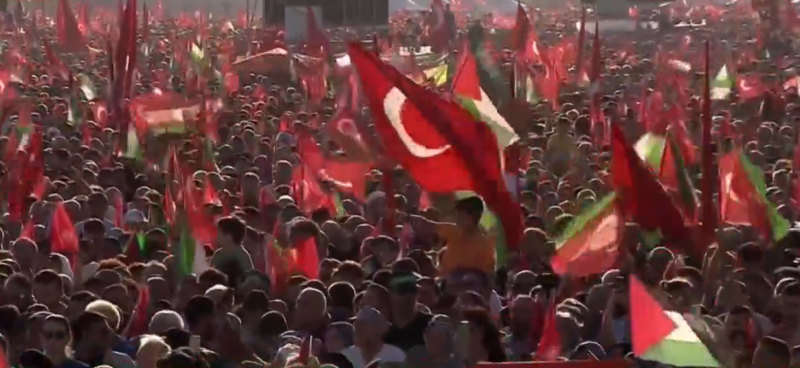 İsrail'in Gazze'ye yaptığı insanlık katliamı İstanbul'da milyonların katılımı ile protesto ediliyor. Atatürk Havalimanı'nda düzenlenen Büyük Filistin Mitingi'nde Cumhurbaşkanı Erdoğan dünyaya önemli mesajlar veriyor.