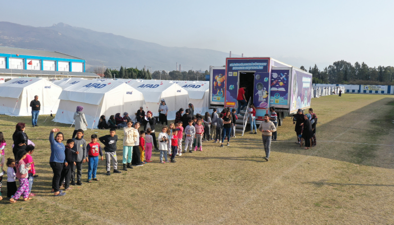 Konya Büyükşehir Belediyesi Bilim Merkezi bünyesinde faaliyet gösteren Bilim Tırı ile Hatay’daki depremzede çocuklar, hem bilimin eğlenceli haliyle tanışıyor hem de moral buluyor. Konya Büyükşehir Belediye Başkanı Uğur İbrahim Altay, Hatay’da Bilim Tırı\'nı ziyaret ederek, çocuklarla bir araya geldi. Başkan Altay, depremin ilk gününden beri yaraları sarmak için Hatay’da ihtiyaç olan her türlü belediyecilik hizmetlerini sağlamaya çalıştıklarını belirterek, bir taraftan da çocuklara yönelik destek faaliyetleri yürüttüklerini söyledi.