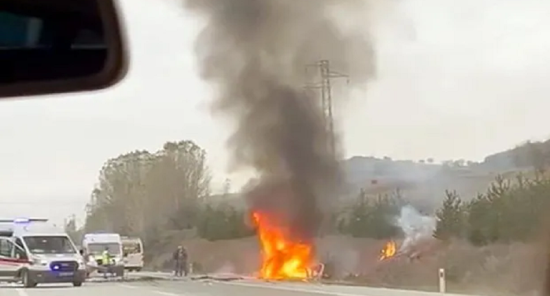 Çarpışmanın ardından otomobillerden biri alev aldı ve kullanılamaz hale geldi.