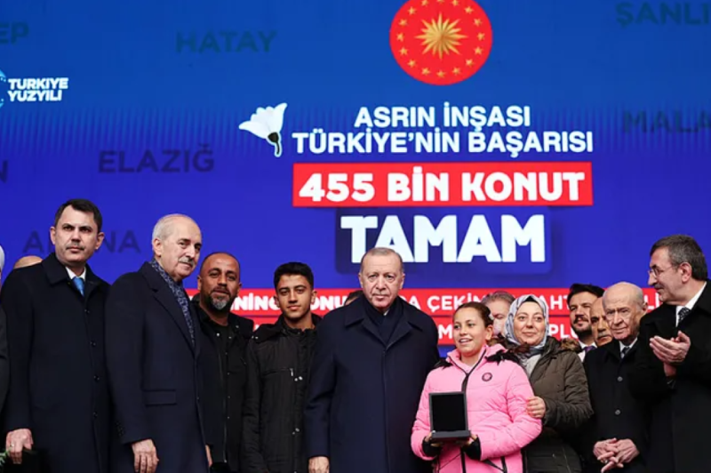 Cumhurbaşkanı Erdoğan, depremin vurduğu 11 ilde yapımı tamamlanan 455 bin 357 bağımsız bölümün hak sahiplerine teslim edildiğini belirterek, bu sürecin dünyada örneği az görülen bir yeniden inşa hamlesi olduğunu vurguladı. Hatay’ın kendileri için ayrı bir yere sahip olduğunu ifade eden Erdoğan, “Hatay’ın bize duyduğu güveni boşa çıkarmamak için gece gündüz çalıştık. Yaralarımızı sabırla, şefkatle ve güçlü bir dayanışmayla sardık” diye konuştu.