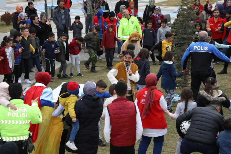 Karatay Belediyesi, Konya’ya yerleşen deprem mağduru ailelerin çocuklarının sosyalleşmesi ve yaşadıkları travmaları atlatabilmeleri amacıyla bir etkinlik düzenledi. Konya İl Emniyet Müdürlüğü'nden görevliler de etkinlik boyunca çocukları yalnız bırakmadı.