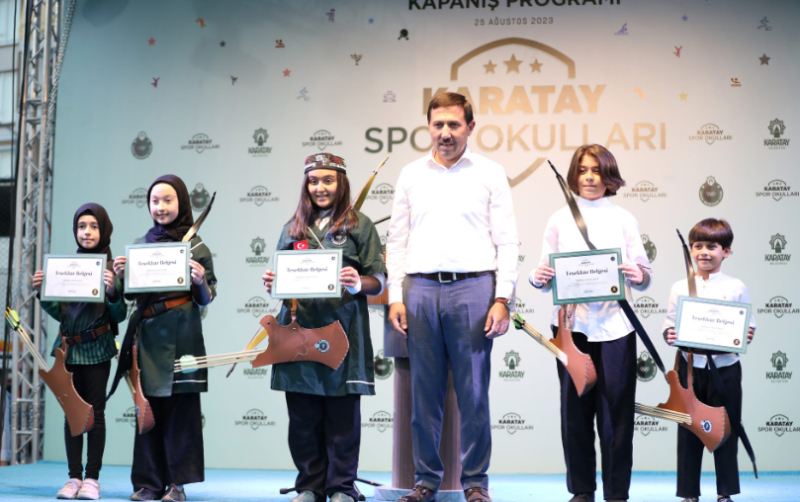 geldiğinde en iyi şekilde kendini ifade etmesini önemsiyoruz. Birleştirici bir güç olan sporun ne kadar önemli olduğunun da çok iyi farkındayız. 2019’dan bu yana düzenlediğimiz Karatay Yaz Spor Okulları’mızdan bugüne kadar on binlerce çocuk ve gencimiz faydalandı. Çocuk ve gençlerimizin kendilerini daha iyi ve daha kolay keşfetmelerine, yetenekleri olduğuna inandıkları alanlarda kendilerini geliştirmelerine olanak sağladık. Yeni arkadaşlıklar kurarak, takım çalışmasının ve dayanışmanın ne olduğunu ne derece önem taşıdığını deneyimleme fırsatı buldular. Yaz tatillerinizi en güzel şekilde değerlendirmeniz ve geleceğinize katkıda bulunmak için Karatay Belediyesi olarak titizlikle çalışıyoruz. Çünkü sizler bizim en kıymetli hazinemizsiniz. Ben inanıyorum ki burada aldığınız eğitimler ve deneyimlerle önünüze çok daha güzel bakacak, geleceğinizi daha kolay şekillendirebileceksiniz. Haziran’da başlayıp bugün itibariyle tamamladığınız eğitimlerle sınırlarınızı zorladınız, kendinizi denediniz ve kendinize olan güveninizi artırdınız. İlgi duyduğunuz 12 farklı branştan birini tercih ederek gösterdiğiniz bu çaba ve hassasiyet ortaya koyduğunuz disiplin ve azim, sizlerin sadece sahada değil, hayatın her alanında daha başarılı olmanıza yardımcı olacaktır” ifadelerini kullandı.
