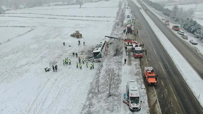 Ekiplerin otobüsten çıkardığı yaralıların çevredeki hastanelere sevki sürüyor.