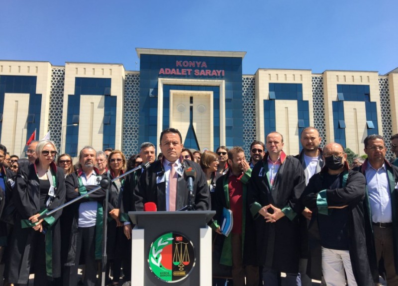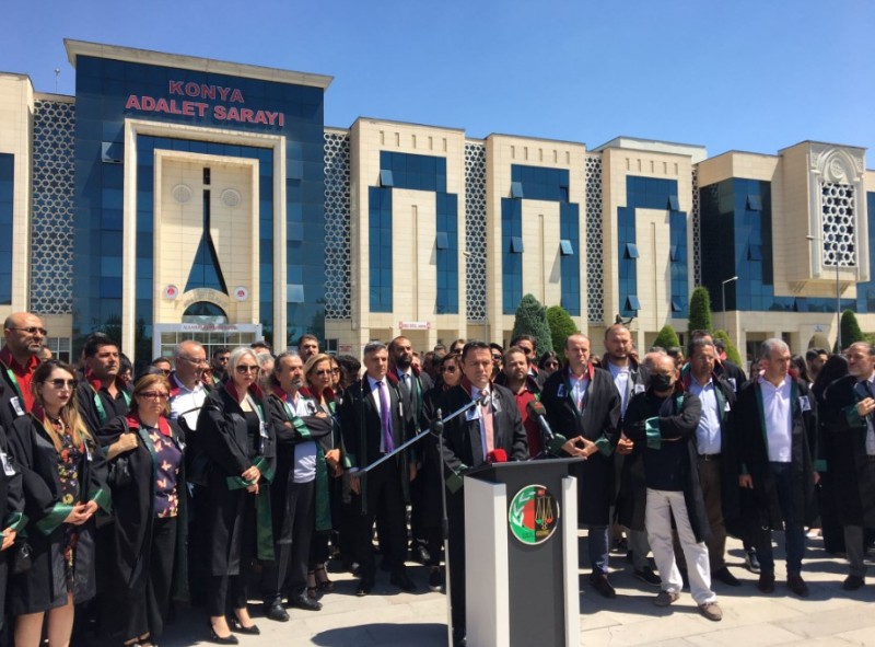 Konya Borusu, İstanbul’da öldürülen avukat Servet Bakırtaş ve Konya Şehir Hastanesi’nde görevi başındayken güvenlik görevlisi tarafından silahlı saldırıya uğrayan Dr. Ekrem Karakaya ile ilgili Adliye Binası önünde basın açıklaması yaptı.