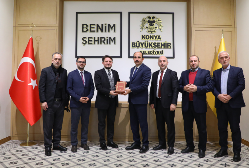 Kosova İslam Birliği Baş İmamı Vedat Sahiti ve beraberindeki heyet, Konya Büyükşehir Belediye Başkanı Uğur İbrahim Altay\'ı ziyaret etti. Kosova heyetini Büyükşehir Taş Bina’da ağırlayan Konya Büyükşehir Belediye Başkanı Uğur İbrahim Altay, Kosova ve Türkiye arasında kadim bir dostluk ilişkisi olduğunu, bu bağların daha da güçlenmesi için KOMEK başta olmak üzere çeşitli kuruluşlarla iş birliği içinde sosyal ve kültürel anlamda önemli çalışmalar yürütüldüğünü kaydetti. Başkan Altay, “Gönül coğrafyamızdan gelen her bir dostumuz, aramızdaki bağların güçlenmesi noktasında heyecanımızı artırıyor. Ziyaretiniz için teşekkür ederim.” diye konuştu. Kosova İslam Birliği Baş İmamı Vedat Sahiti de misafirperverliğinden dolayı Başkan Altay’a teşekkür etti. Konya’nın tarihi ve turistik yerlerinin yanı sıra akademik araştırma amacıyla üniversiteleri de ziyaret ettiklerini belirten Sahiti, Konya’nın birçok alanda örnek olduğuna şahitlik ettiklerini ifade etti.