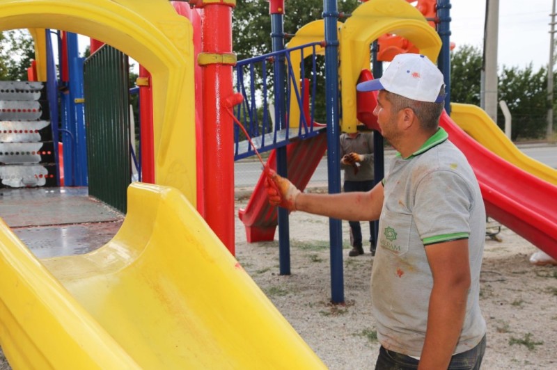 Yeni nesil çocuk oyun gruplarının montajının yapıldığı parklarda bakım ve onarım çalışması gerçekleştirildi.