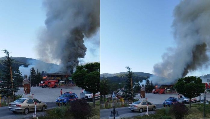 Dinlenme tesisinin mutfak ve çatı bölümünden başlayan yangın, hızla büyüyerek yayıldı.