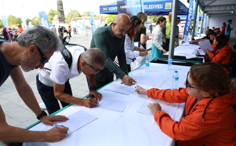 Yarışma kitlerini teslim alan sporcular, yarı maraton için Konya’da bulunmaktan dolayı büyük bir memnuniyet duyduklarını ifade ederek, organizasyonu düzenleyen Konya Büyükşehir Belediyesi’ne teşekkür etti.