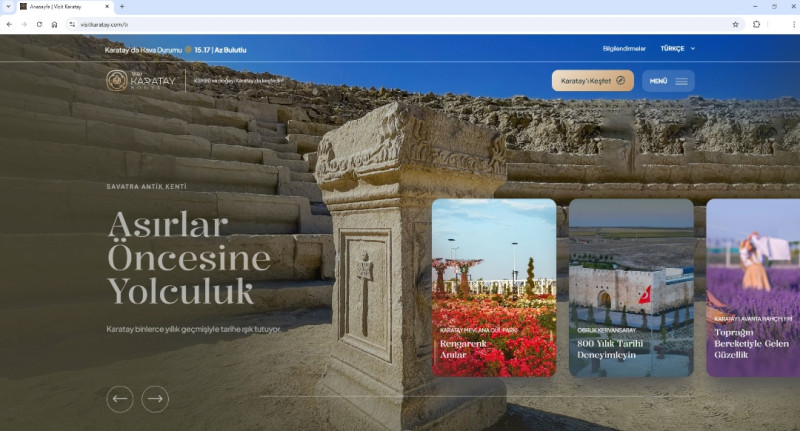 Modern ve kullanıcı dostu arayüzüyle öne çıkan Visit Karatay, Türkçe, İngilizce ve Arapça dil seçenekleriyle Karatay’ın tüm değerlerini tanıtıyor. Platform; ilçenin müzelerinden tarihi yapılar ve doğal güzelliklere, gastronomiden termal turizme, festivallerden yerel etkinliklere kadar geniş bir yelpazede bilgi sunuyor.
